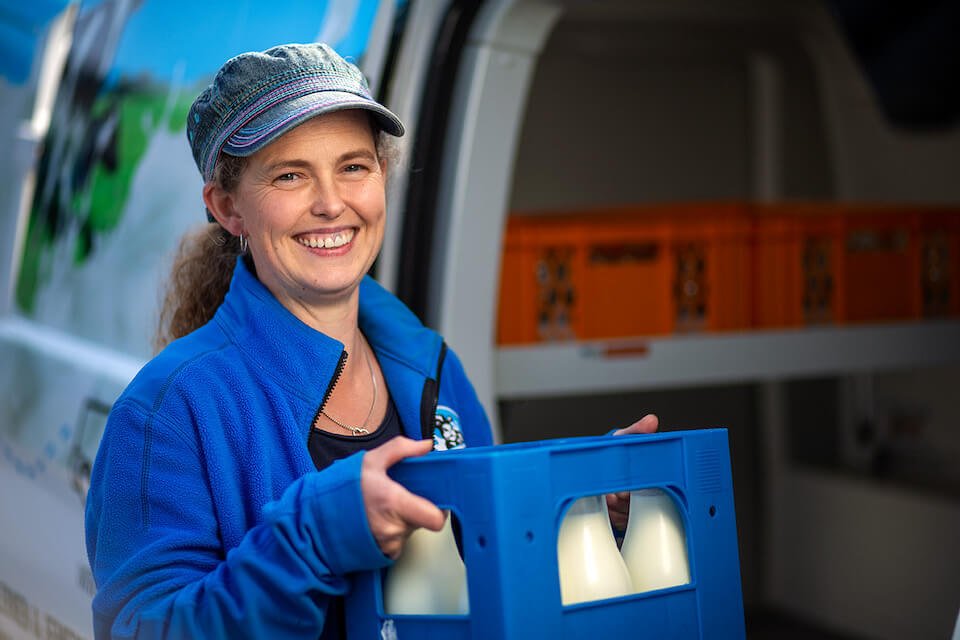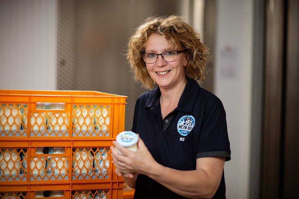 Unsere kleine Molkerei befindet sich direkt neben dem Kuhstall. Absolut frisch und ohne Umwege pasteurisieren wir unsere Milch und kultivieren unsere Joghurts, bevor wir sie in Glasbehältnisse abfüllen und im Flensburger Raum ausliefern. Frische, die man schmeckt!